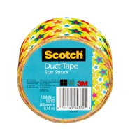 Scotch(R) Duct Tape- Stars is a pattern, midgrade duct tape used to craft, repair, decorate, and color code. This item is available in a 1w x 2h x 3d perfed case with 6 individually wrapped 1.88 in x 10yd rolls.