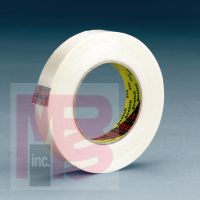 Scotch(R) Filament Tape 898 is a clear polypropylene backing reinforced with glass yarn filaments with a synthetic rubber resin adhesive.